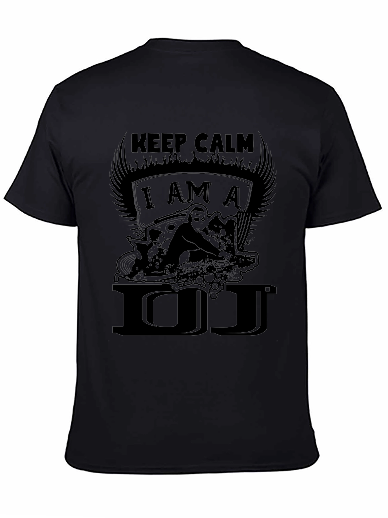 Show off your love for DJing with this cool black graphic t-shirt. The shirt features a "Keep Calm I Am A DJ" design with a detailed graphic of a DJ mixing at a turntable. Made from comfortable materials, this shirt is perfect for casual wear, music events, or DJ gigs. The bold print makes a statement, expressing your passion for music. A must-have for any DJ or music enthusiast's wardrobe. A great gift for the DJ in your life.