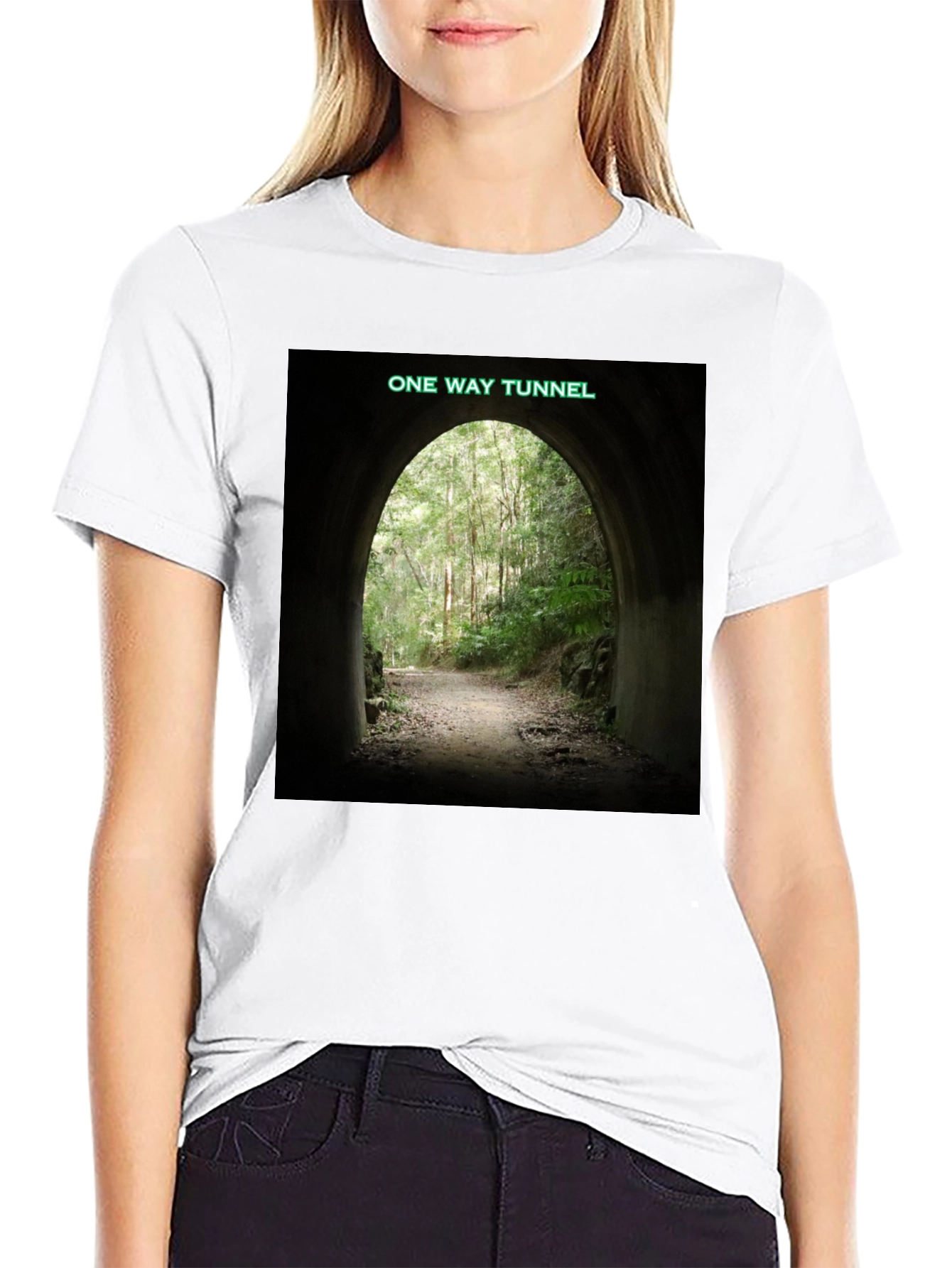Explore the unknown with this striking black T-shirt featuring a unique 'One Way Tunnel' design. The image captures a tunnel opening into a lush forest, creating a sense of adventure and mystery. Made from comfortable, breathable fabric, this tee is perfect for casual wear or your next outdoor excursion. Its bold graphic print makes it a standout piece in any wardrobe. Whether you're a nature lover, an adventure seeker, or simply appreciate unique designs, this T-shirt is sure to make a statement. Ideal for everyday wear, hiking, or as a thoughtful gift for the explorer in your life.