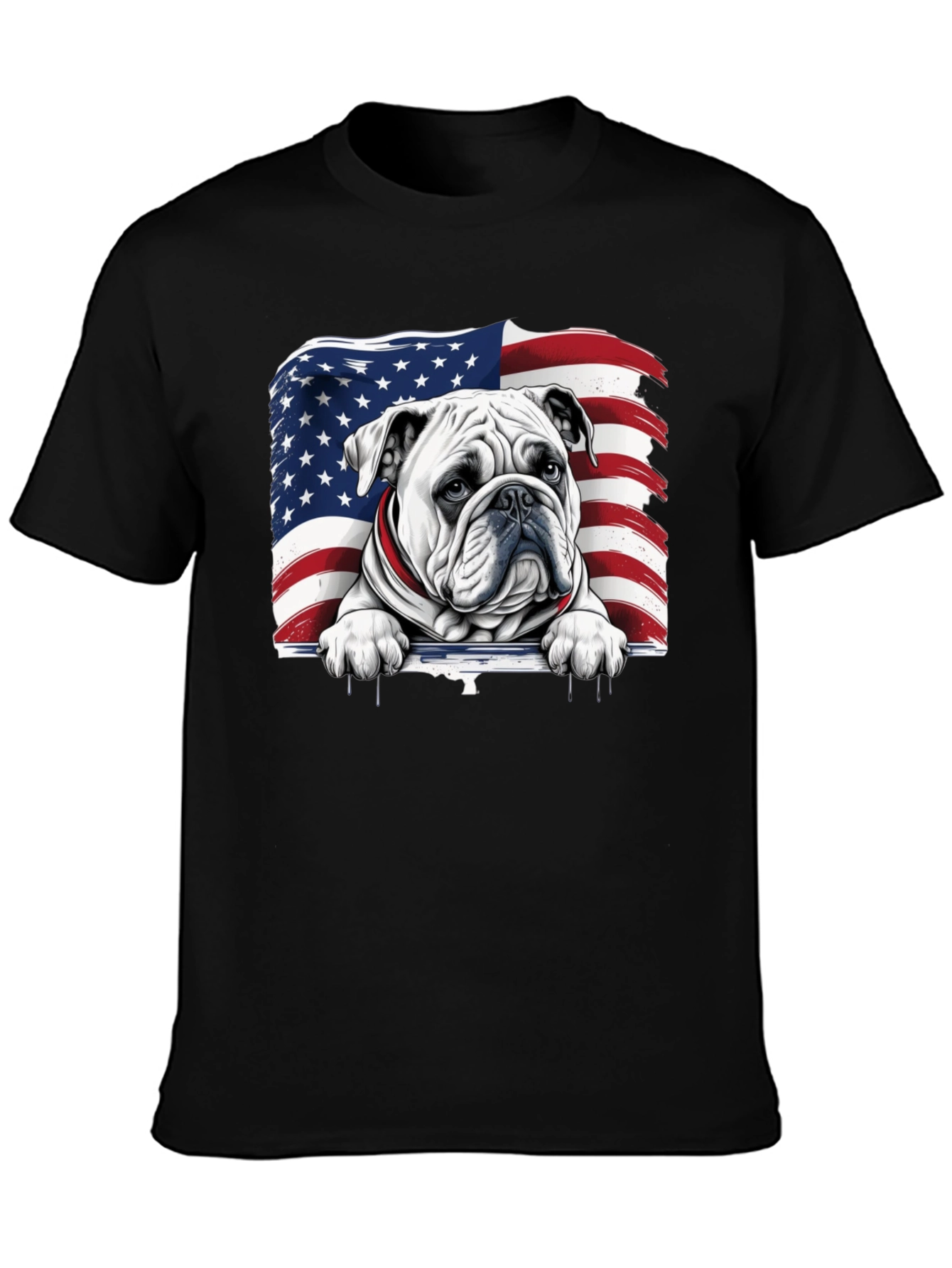 Show your American pride with this unique t-shirt! The design features a detailed graphic of an English Bulldog set against a stylized American flag backdrop. The high-quality print is eye-catching and vibrant, making it a standout piece in any wardrobe. Made from a comfortable, breathable fabric, this tee is perfect for casual wear, patriotic events, or everyday style. A must-have for dog lovers and anyone who wants to celebrate the USA with a touch of canine charm. Order yours today and let your patriotic spirit shine!