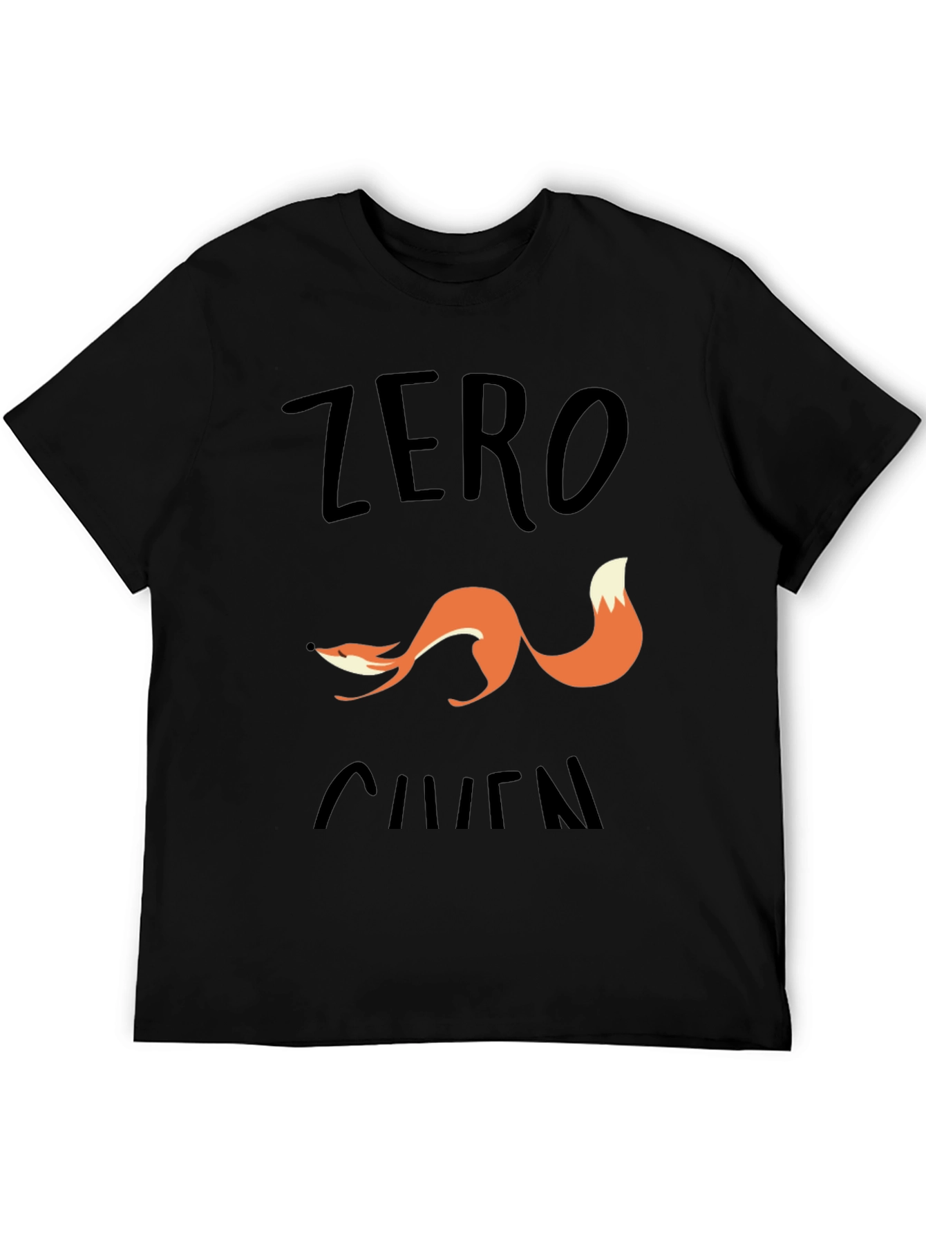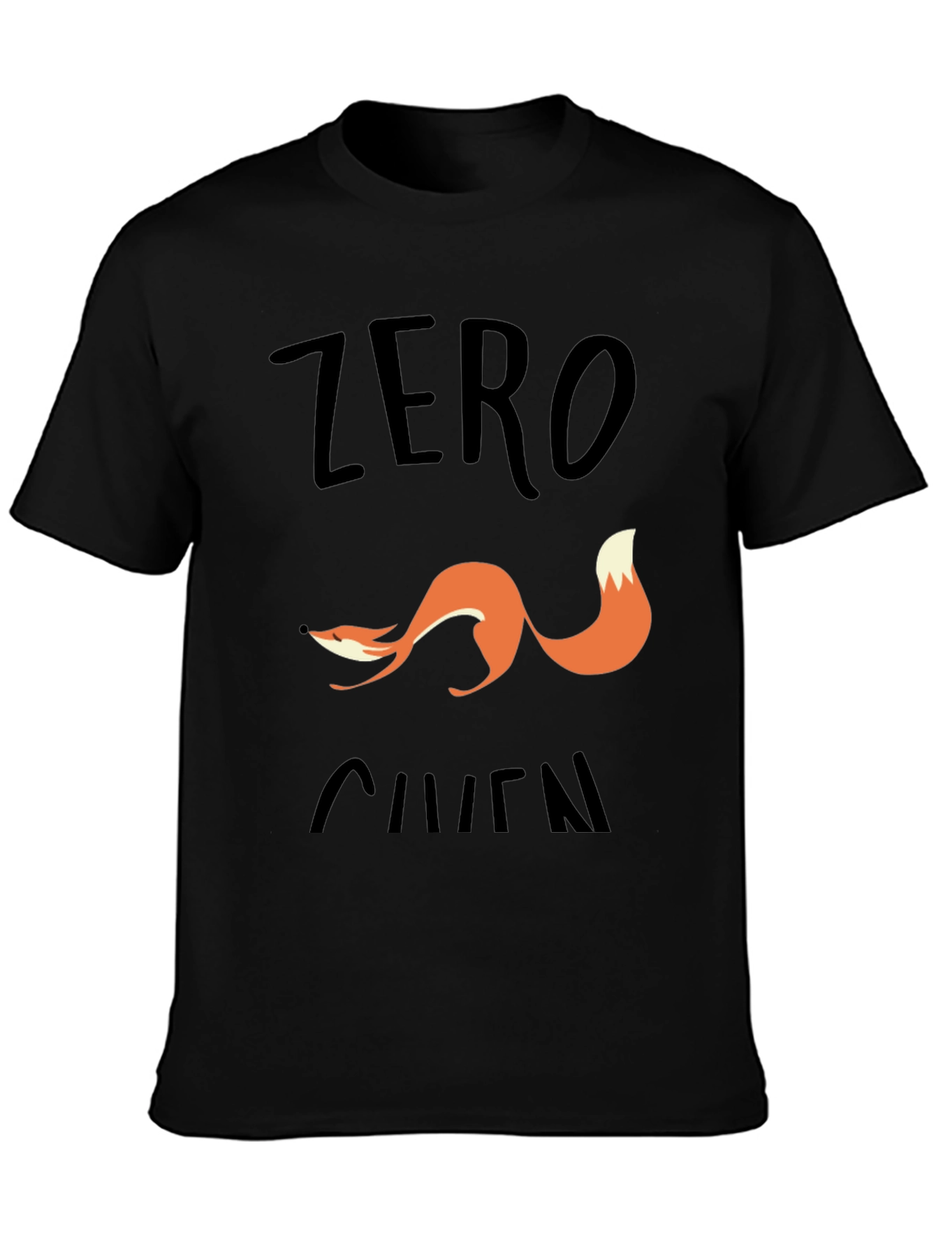 Show off your playful side with this Zero Fox Given black t-shirt. The shirt features a whimsical design with the words "ZERO" and "GIVEN" in a bold sans-serif font, separated by an orange fox graphic. The fox is stylized in a curved pose adding a touch of humor and charm to the design. This tee is made from soft, breathable fabric for all-day comfort. It's a great choice for casual outings, relaxed weekends, or anyone who loves a quirky statement piece. Pair it with jeans, shorts, or joggers for an effortlessly cool look.